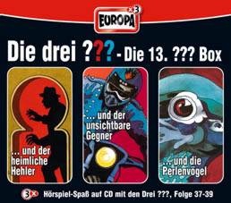 Box 13 und wieder bekommen alle Fans 3 schicke "Drei Fragezeichen"-Episoden für ihre Sammlung in der hübschen Pappschuber-Box kredenzt. Gut, alle drei Folgen zählen sicher nicht zu den Top-Folgen der Kalifornischen Super-Detektive, aber dennoch sind sie mit genug Charme, Spannung, der gewohnt perfekten Sound/Effekt/Atmo-Machart und tollen Sprechern ausgestattet. "Gewinner" der drei Episoden ist die 'Perlenvögel'-Folge, die einfach mit den besten Charakteren und einer guten Story aufwartet. Beim 'Unsichtbaren Gegner' wird leider etwas zu dick aufgetragen, dagegen ist gerade der kauzige Großvater wirklich brillant!!! Tja, und beim 'Heimlichen Hehler' fehlt einfach der letzte Pepp... Dennoch einmal mehr sind alle drei Folgen prickelnder als das Gros von ähnlichen Detektiv-Reihen, daher kann man beispielsweise die 2 Sterne für den 'Heimlichen Hehler' nicht mit einer 3-er Wertung bei TKKG vergleichen...das wäre ja, wie wenn man Äpfel und Glühbirnen abwägt!